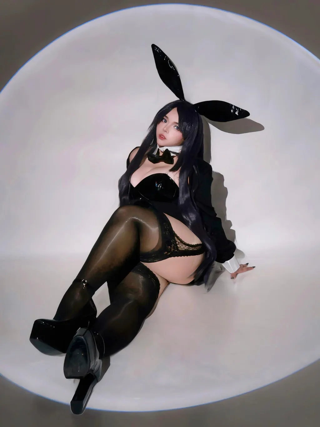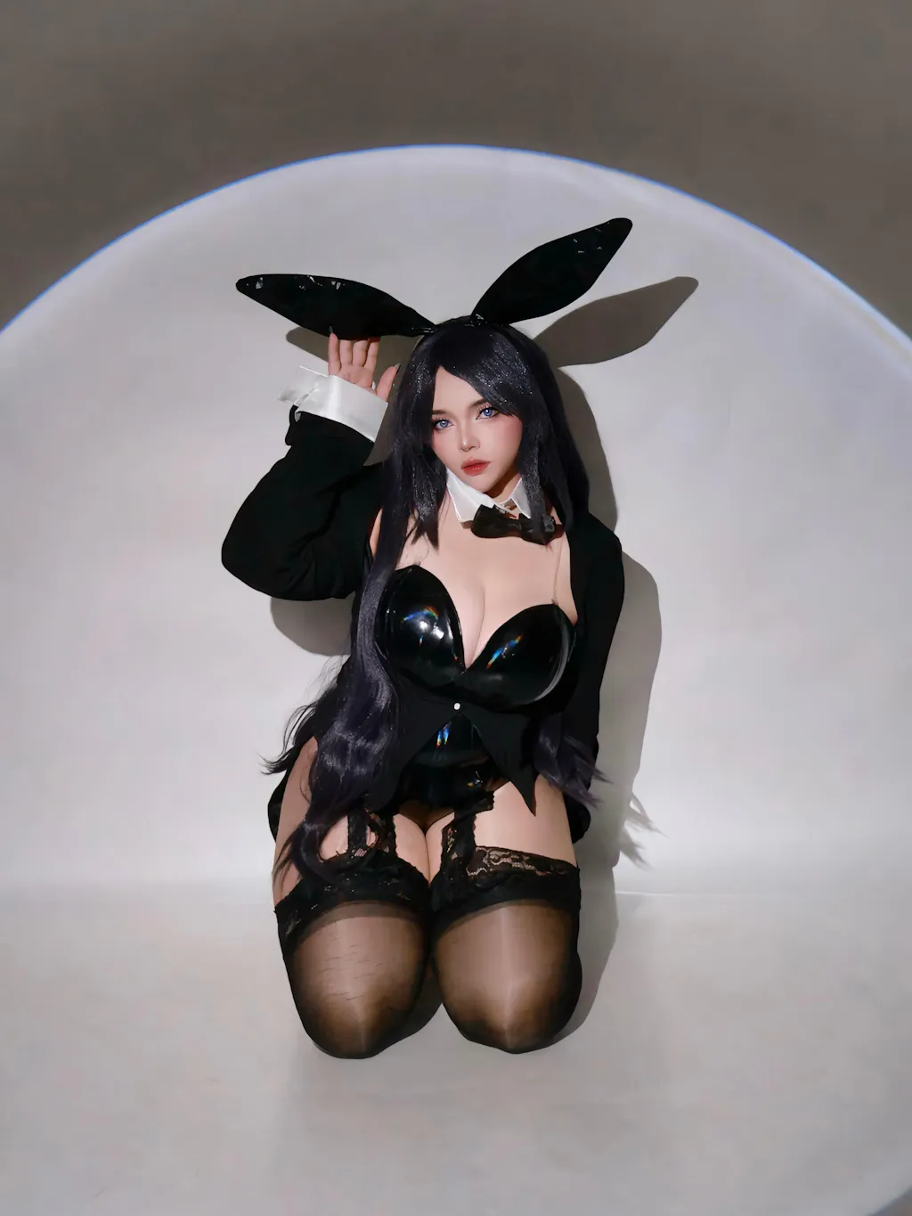 This Arisa bunny suit cosplay is one of my most striking looks so far. The design feels elegant and bold at the same time, with a deep black base that shifts subtly with a tornasol effect under different lighting. The details elevate the whole outfit, giving it a more refined and eye-catching presence on camera. The material fits smoothly and enhances the silhouette, making it perfect for photoshoots where lighting plays an important role. Overall, it creates a powerful and captivating aesthetic that really stands out.