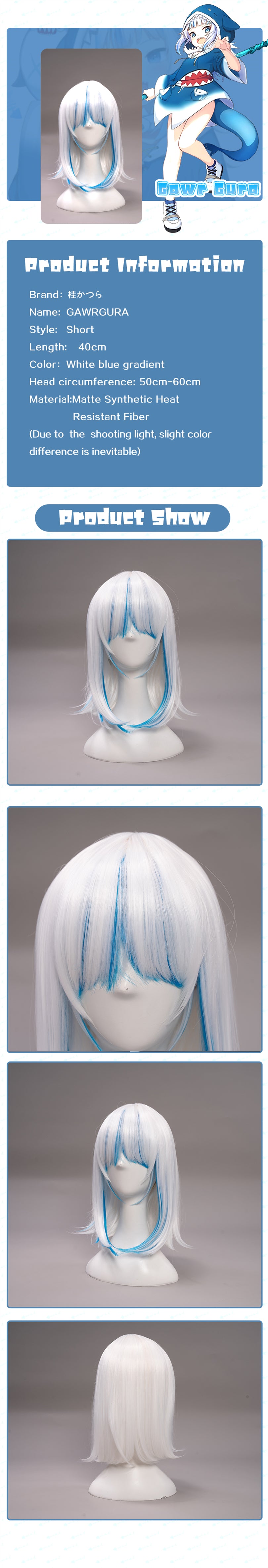Uwowo Cosplay Gawr Gura Cosplay Wig Tail Shark GAWRGURA 40cm White Blue Gradient Wig