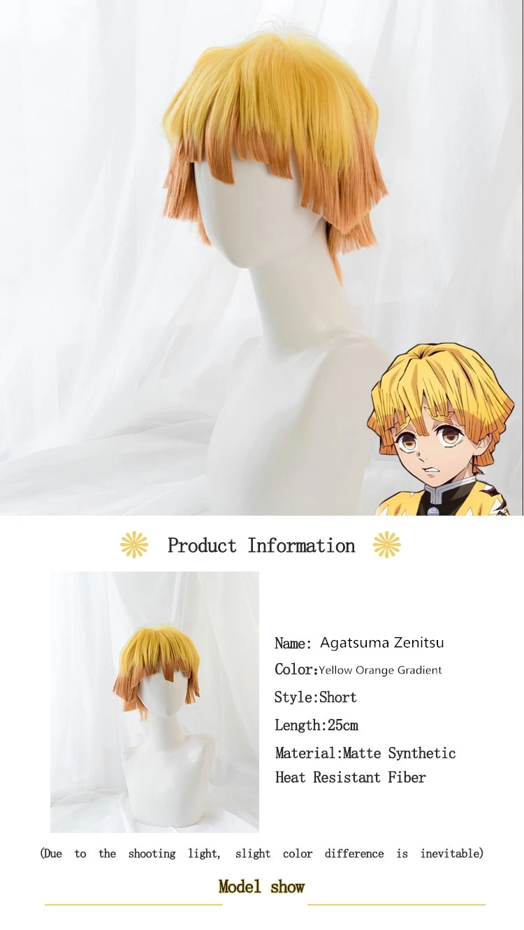 Uwowo Anime Zenitsu Cosplay Wig 25cm Short Yellow Orange Gradient Wig