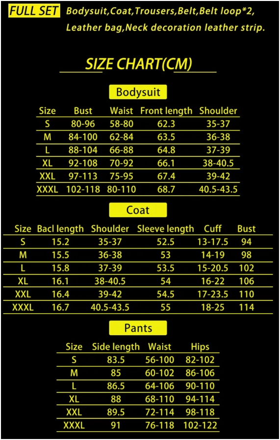 Costumes with the white Uwowo logo (Collab Series) use size charts provided by our partners, and we cannot change those sizes.