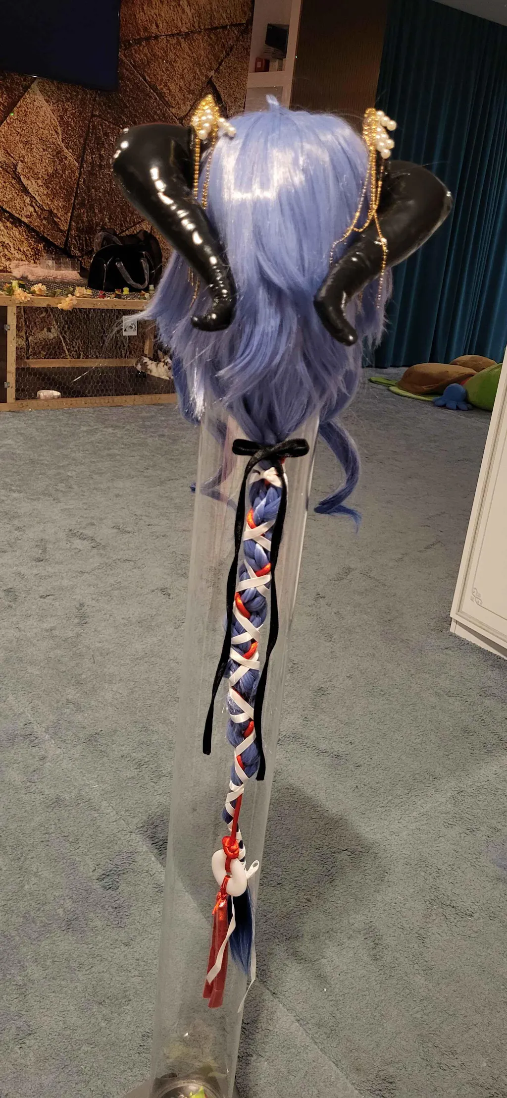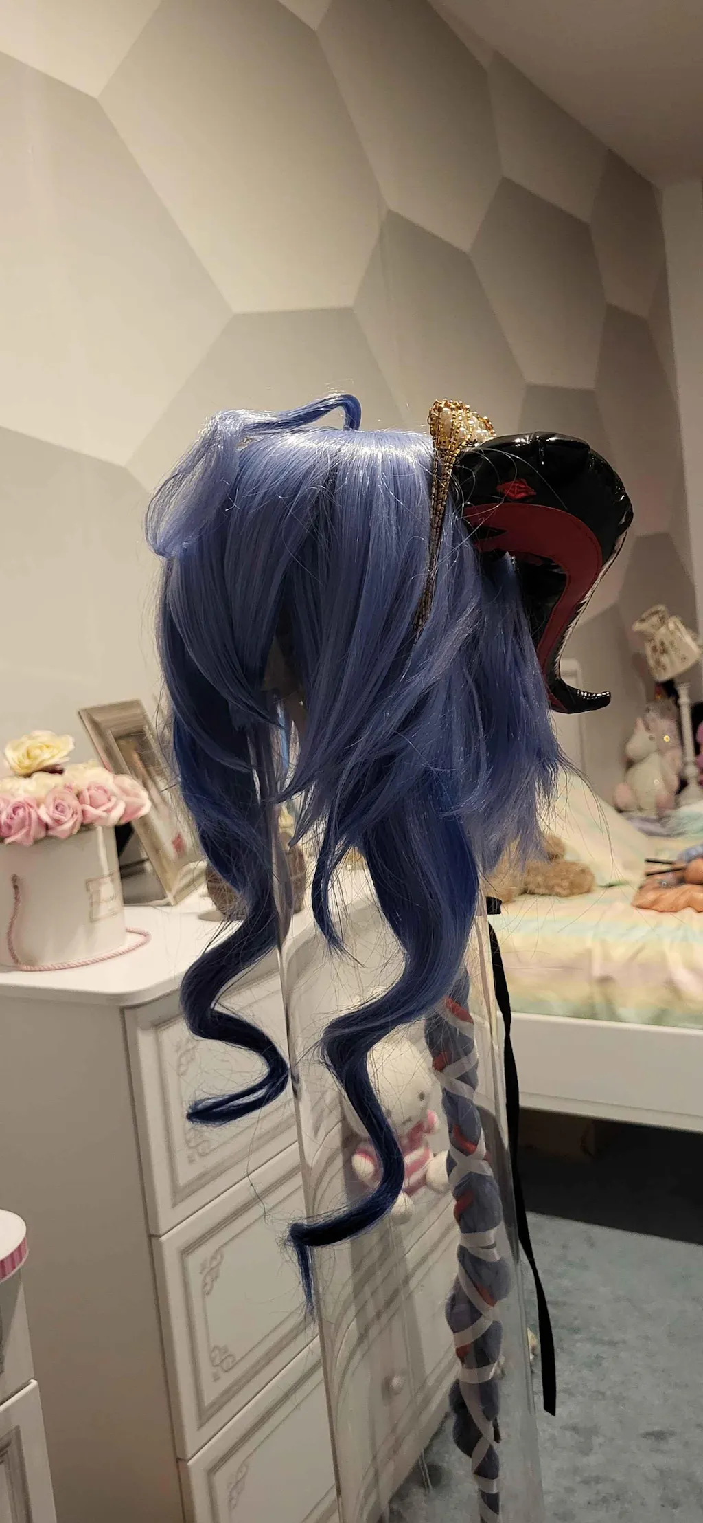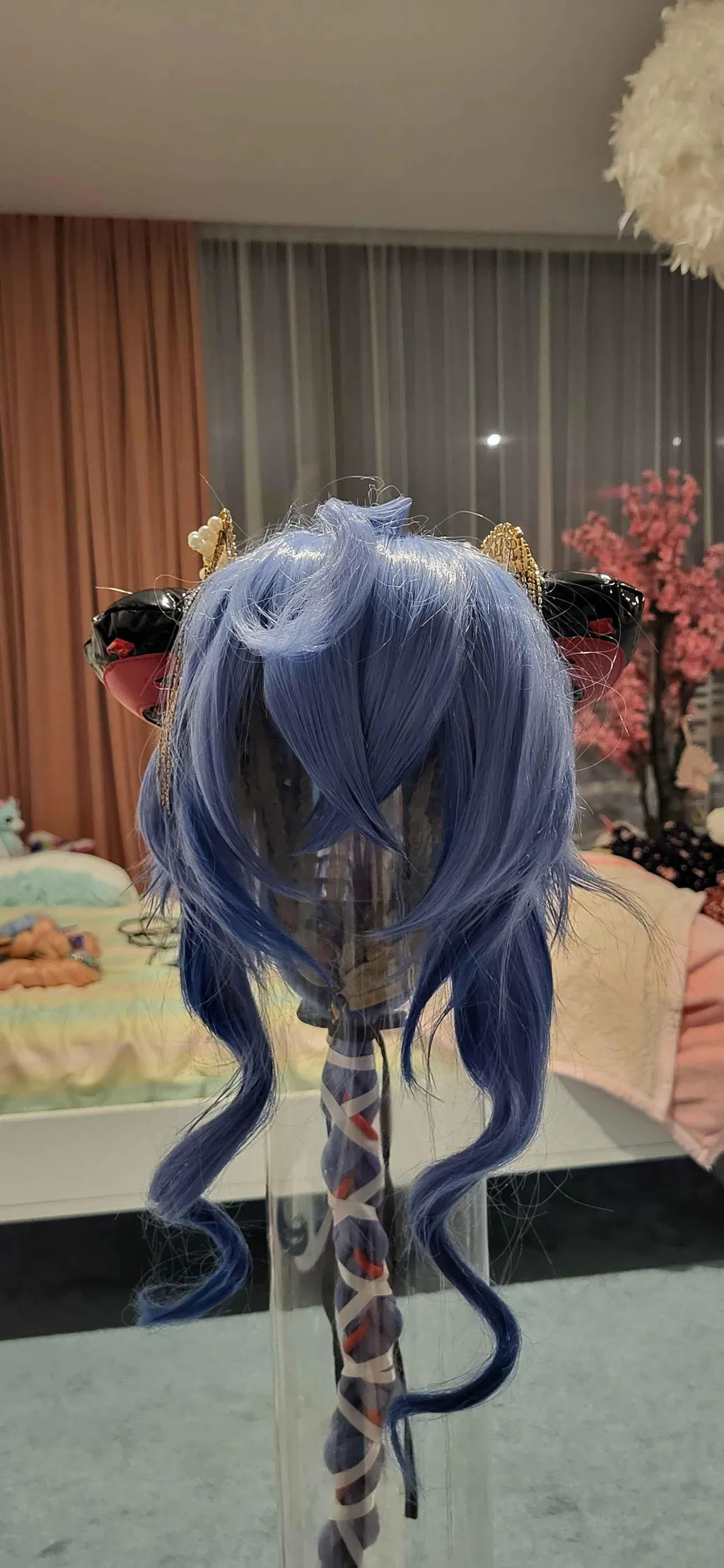 Uwowo Genshin Impact Cosplay Ganyu Plenilune Gaze Cosplay Wig 90cm Blue Wavy Hair
